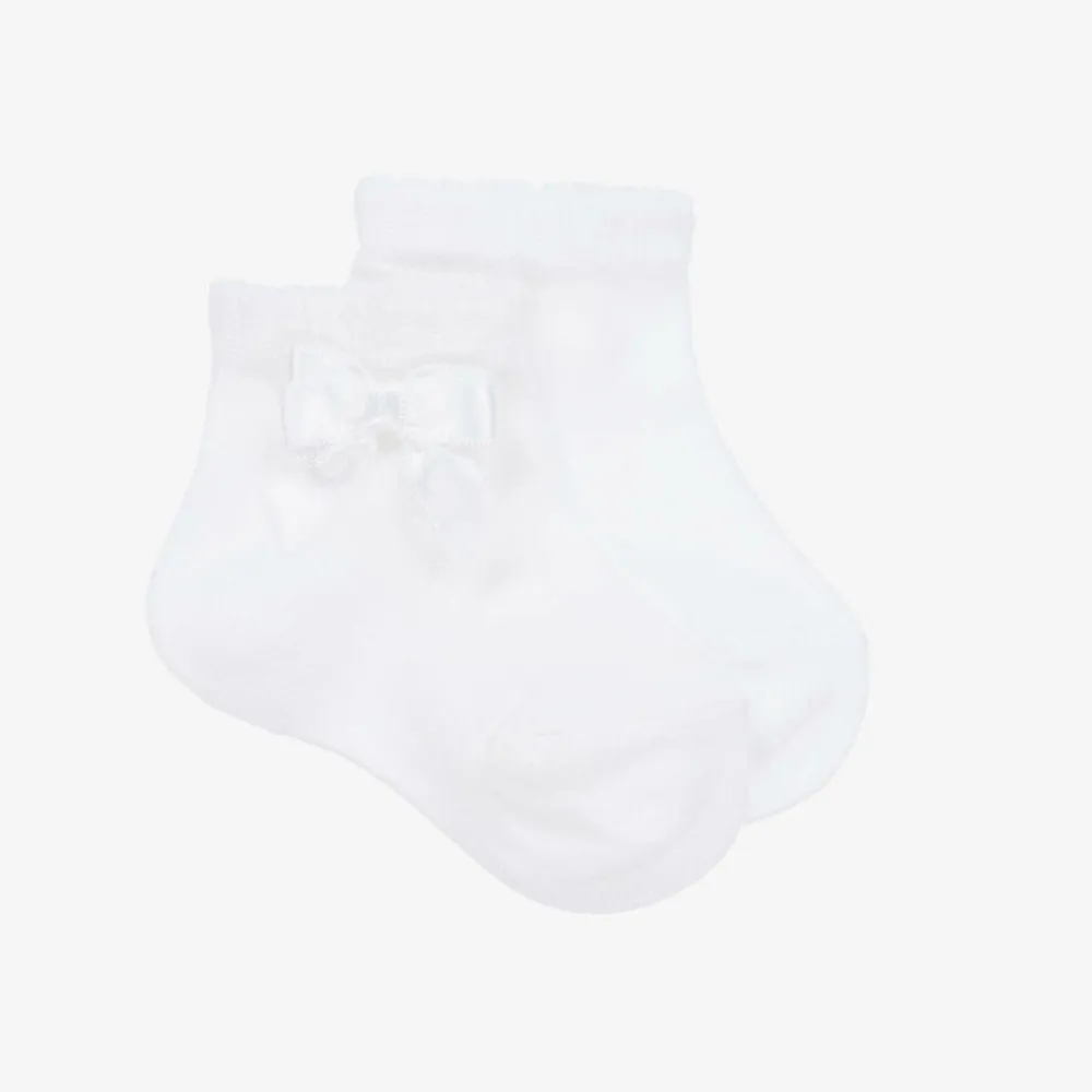 Story Loris Socks*Baby Girls White Bow Socks