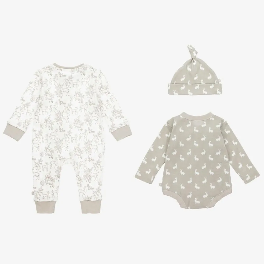 The Little Tailor Gifts|Babysuits*Grey Woodland Print Cotton Babysuit Set