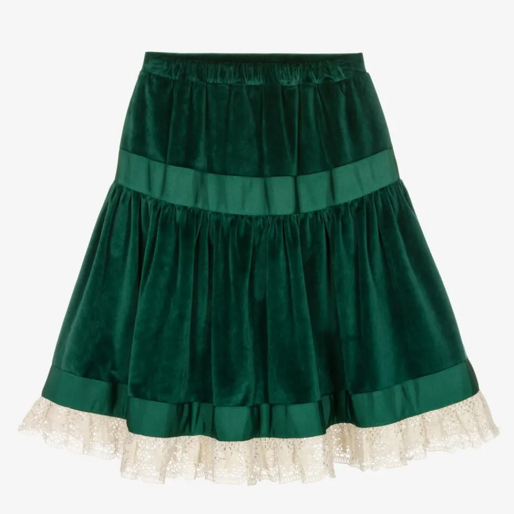 The Middle Daughter Skirts*Girls Green Velvet & Lace Skirt