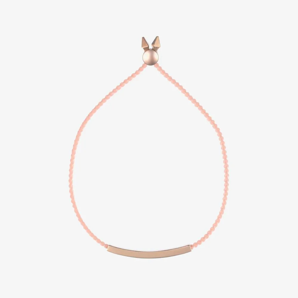 Pretty pink rope bracelet for girls by Treat Republic. The rose gold plate can be engraved with your child's name or sweet message, making a thoughtful, sentimental gift to wear or treasure. The bracelet has a secure tie fastening, ideal for adjustable as she grows.