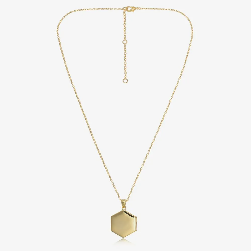Lovely gold plated necklace for boys and girls by Treat Republic, ideal for cherishing a sweet memory. The hexagonal pendant can be thoughtfully engraved with their name. The pendant locket opens to reveal two spaces, where personalised photos can be inserted. The adjustable chain allows it to be worn at different lengths as your little one grows.