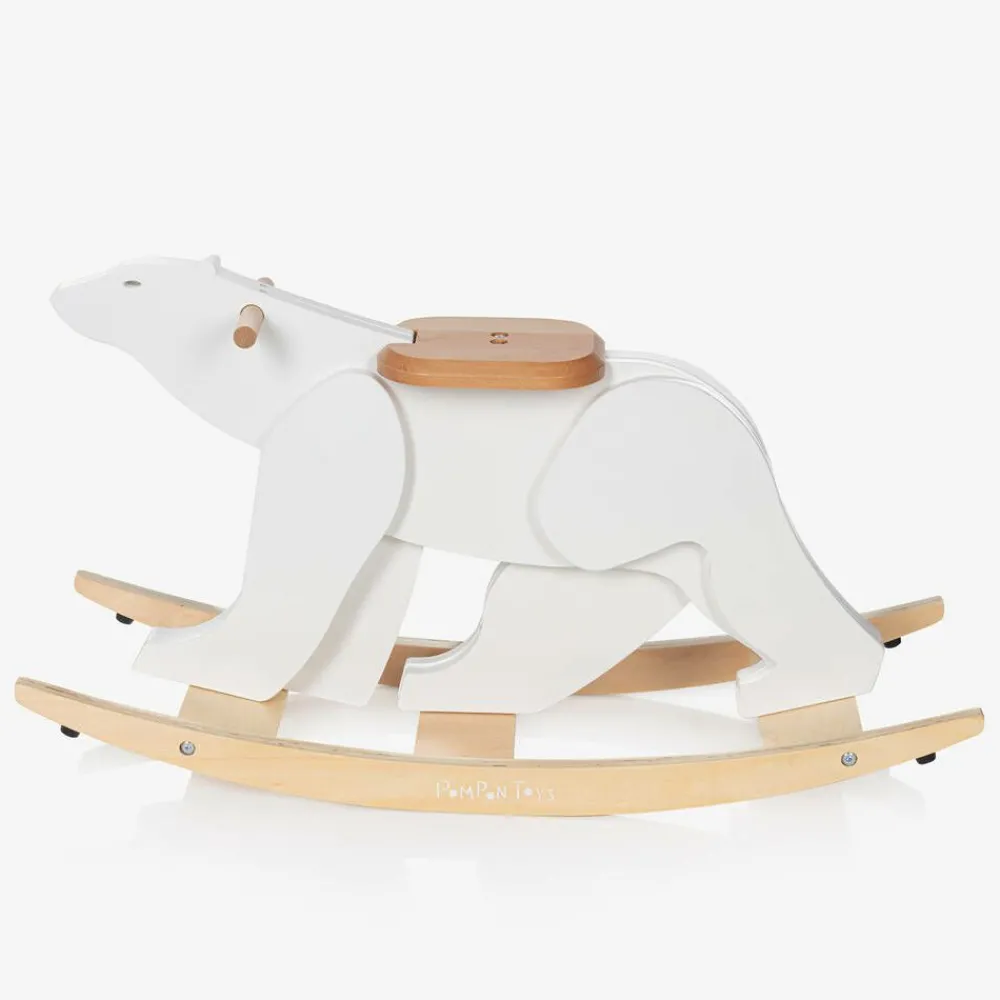 Inspired by the famous sculpture of the White Bear by François Pompon, this cute white rocking polar bear toy for little boys and girls is designed by Vilac. Crafted in smooth, lightweight wood, this adorable nursery accessory encourages hours of endless fun and is set on a sturdy, curved base for smooth rocking. It has a supportive seat and useful handles for your little one to hold on to.