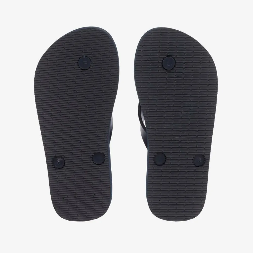 Navy blue flip flops for boys by luxury designer, Vilebrequin. This beach-bound style has branded straps and colourful turtle print insoles. The ridged outer sole improves grip on slippery poolside surfaces.