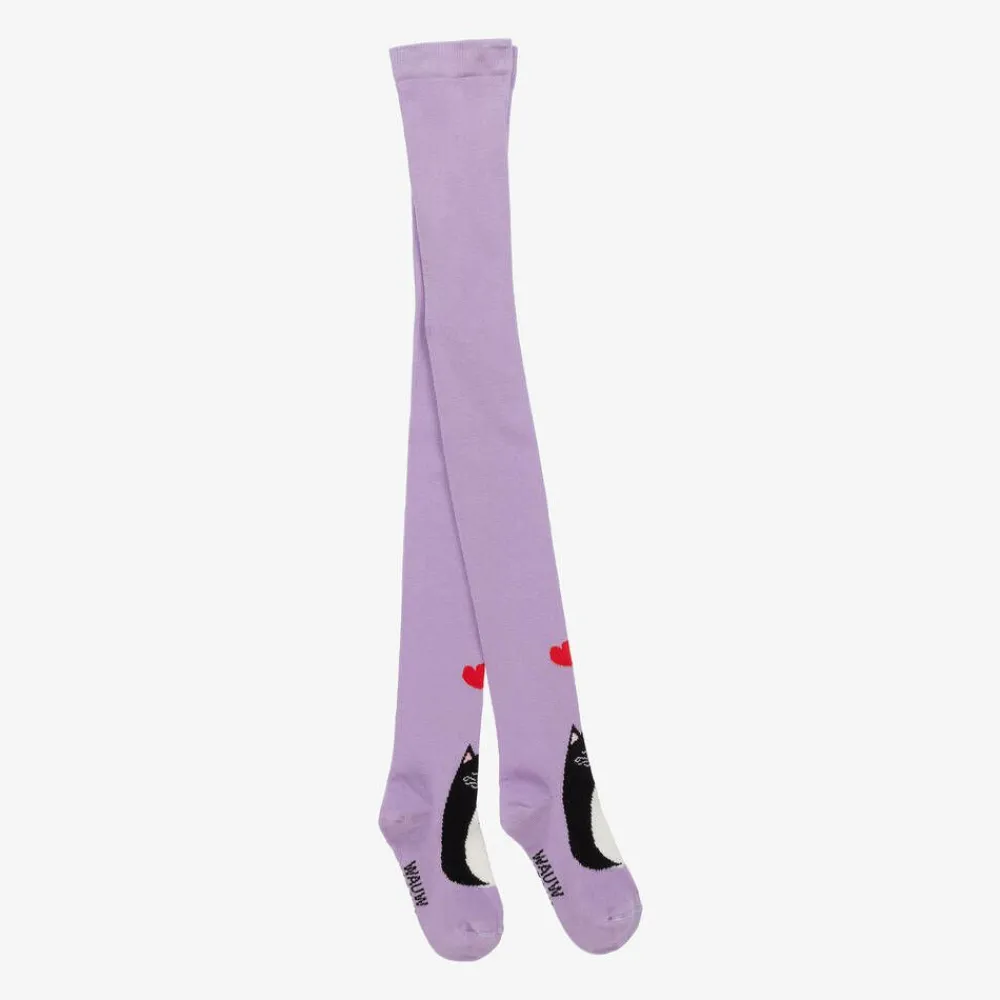 Wauw Capow Tights|Tights*Girls Purple Organic Cotton Cat Tights