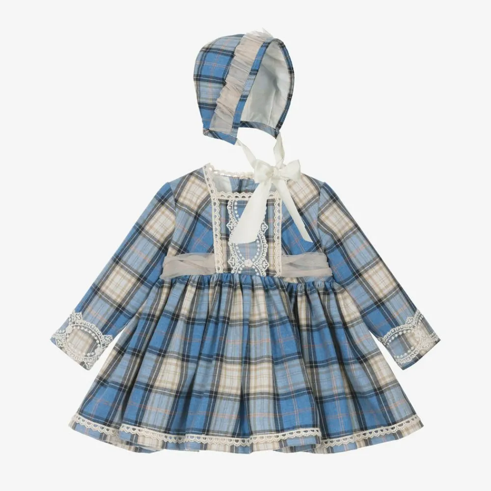 Abuela Tata Dresses*Baby Girls Blue Check Cotton Dress Set