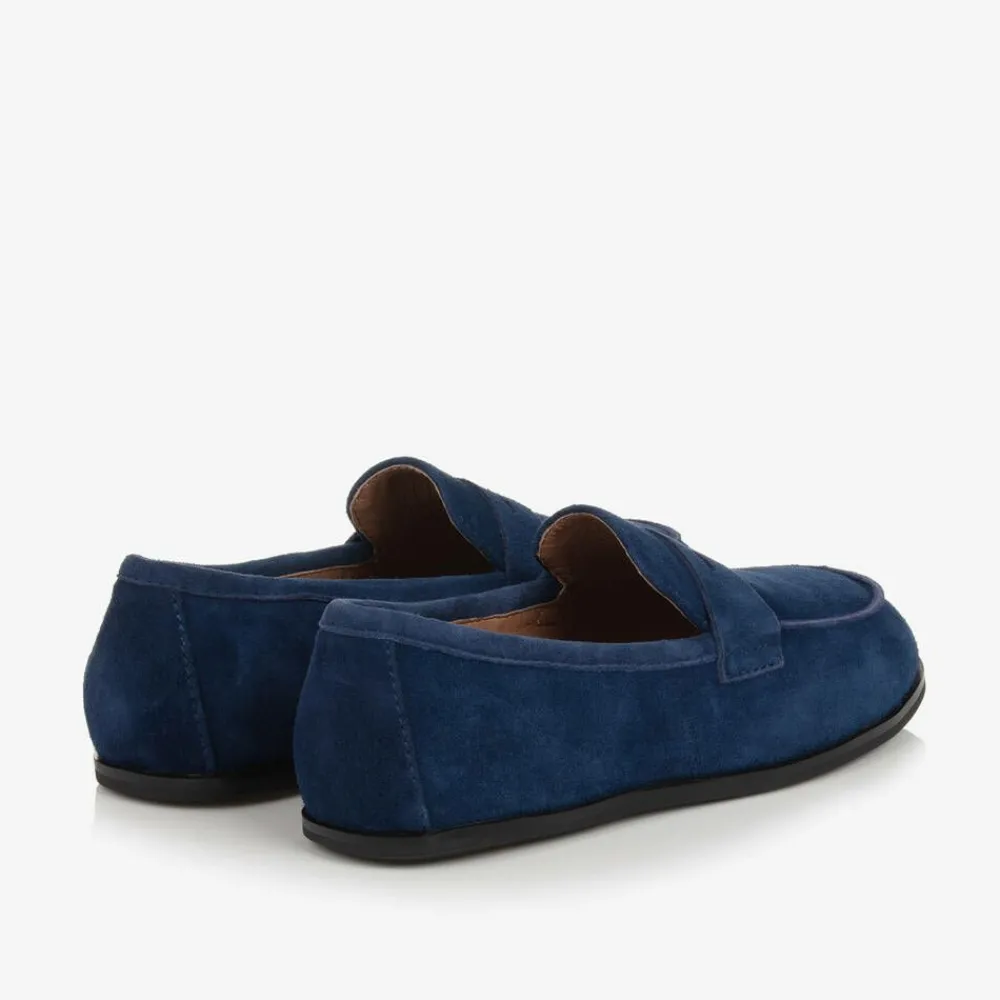 Classically styled, these navy blue slip-on loafers for boys are by British brand Age Of Innocence. Beautifully handcrafted from soft suede leather, they have traditional 'penny keeper' detailing on the toes for a timeless look. Lined in smooth leather with a gently padded insole, they have black non-slip rubber outsoles for a smart finish.