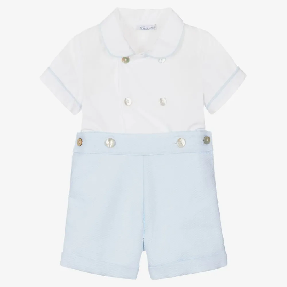 Ancar Outfit Sets|Outfit Sets*Boys Blue & White Cotton Buster Suit