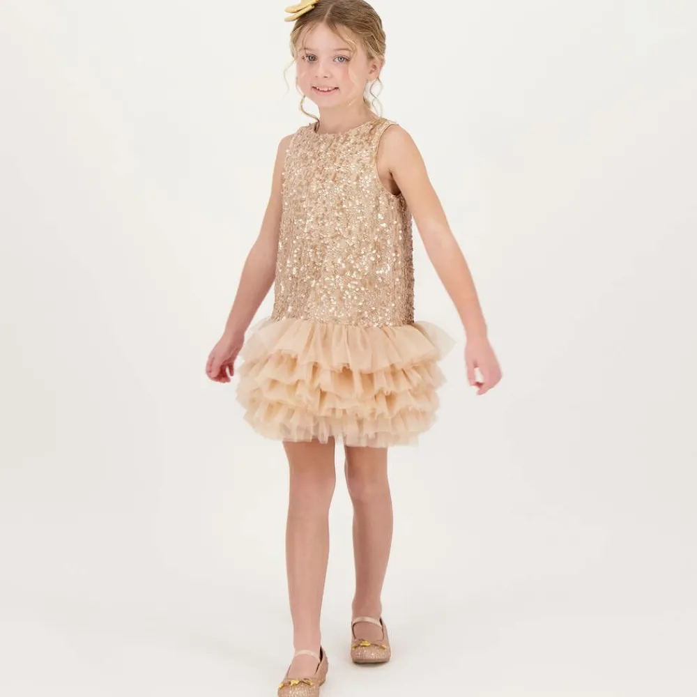 Angels Face Dresses*Girls Pink Sequin & Tulle Dress Caramel