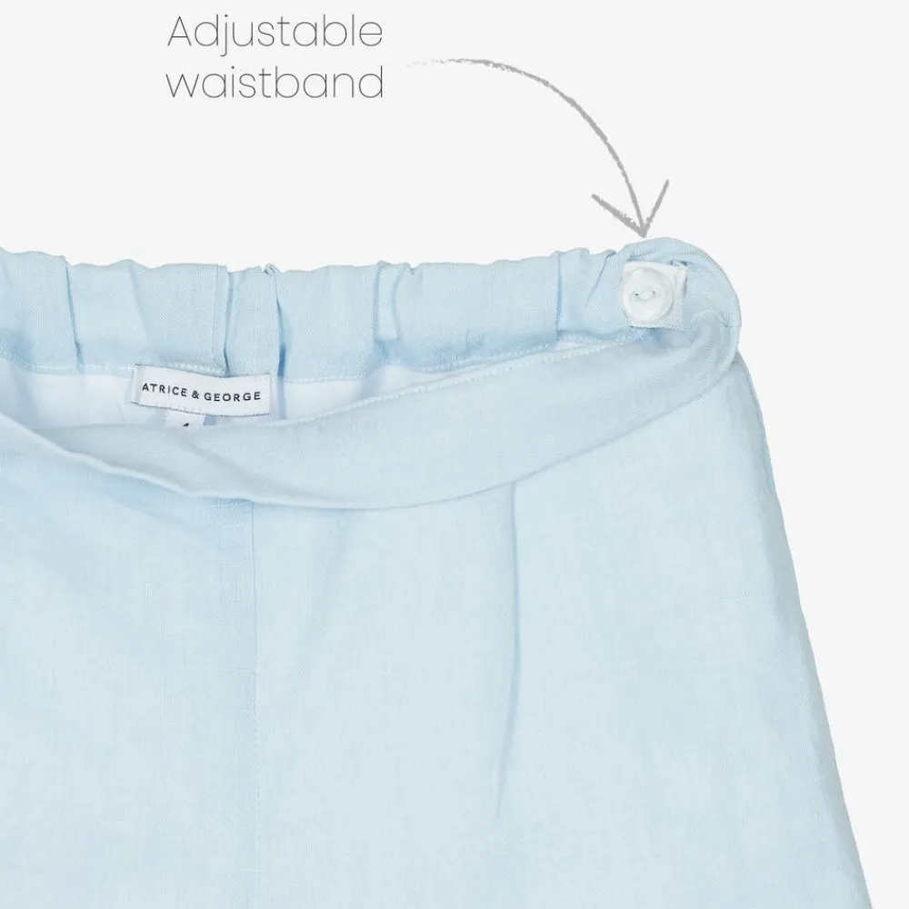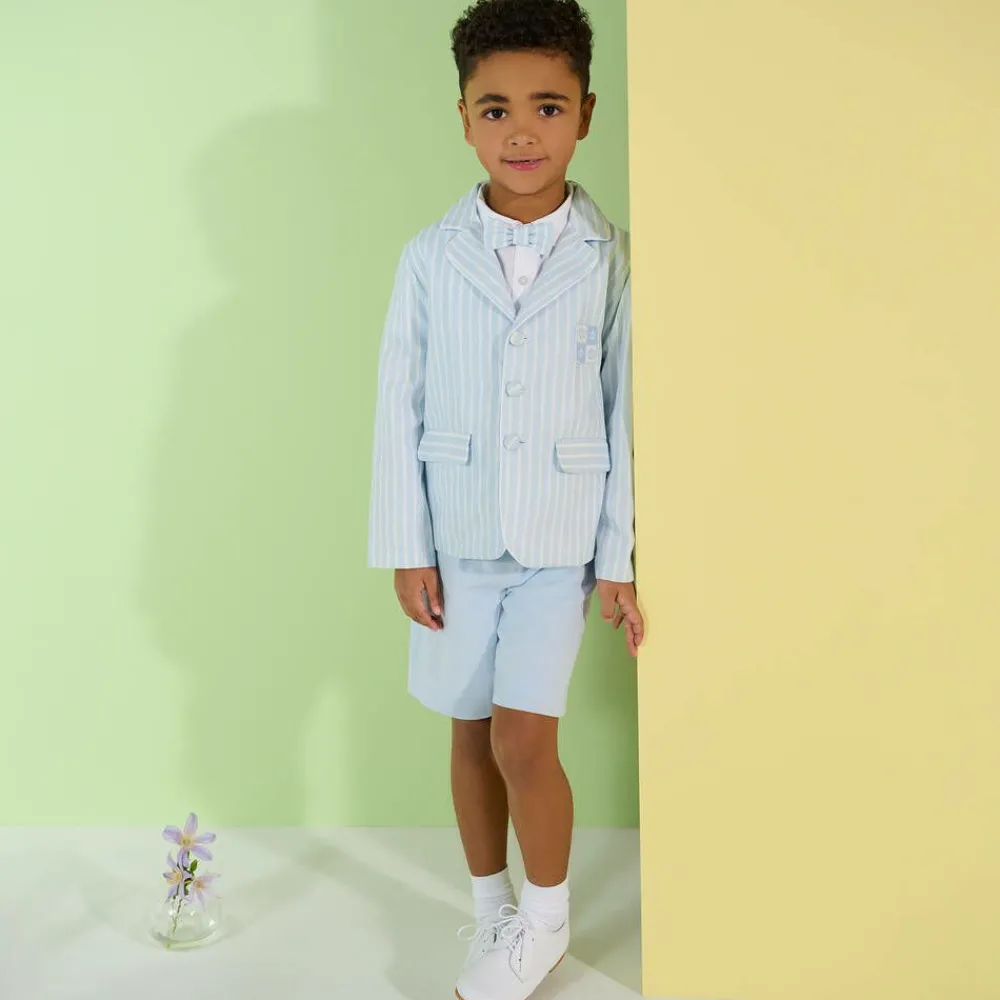 Beatrice amp; George Suits*Boys Blue Stripe Cotton & Linen Shorts Suit