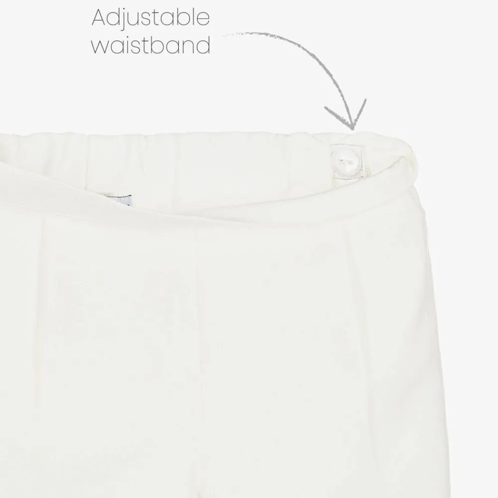 Exclusive to Childrensalon, a smart four piece shorts suit for younger boys by traditional British brand Beatrice & George. Ideal for a special occasion, the white cotton poplin shirt fastens with logo buttons on the front. It comes with a detachable, button-fastening ivory bow tie made in a super soft, viscose blend, with a subtle herringbone pattern. The coordinating waistcoat has an embroidered logo crest on one side, fastens with fabric-covered buttons and is lined in comfortable cotton voile. The matching shorts have neat pleats on the front and a useful, adjustable waistband that is elasticated around the back for a good fit. Easy to wear, they simply pull up.