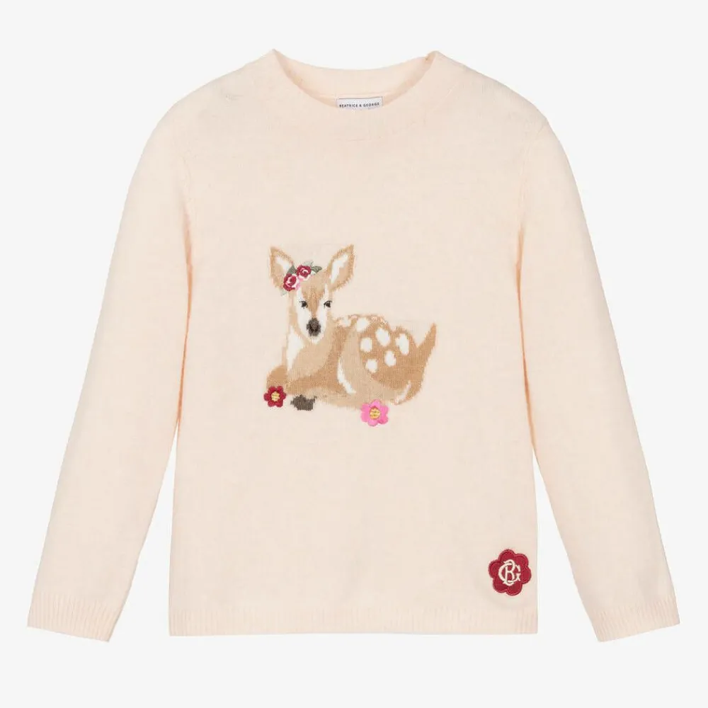 Beatrice amp; George Tops*Girls Pink Wool & Cashmere Deer Sweater