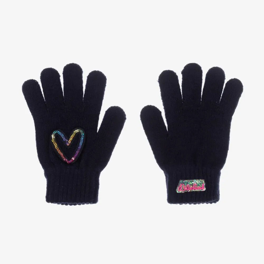 Billieblush Gloves & Mittens*Girls Navy Blue Sequin Heart Gloves