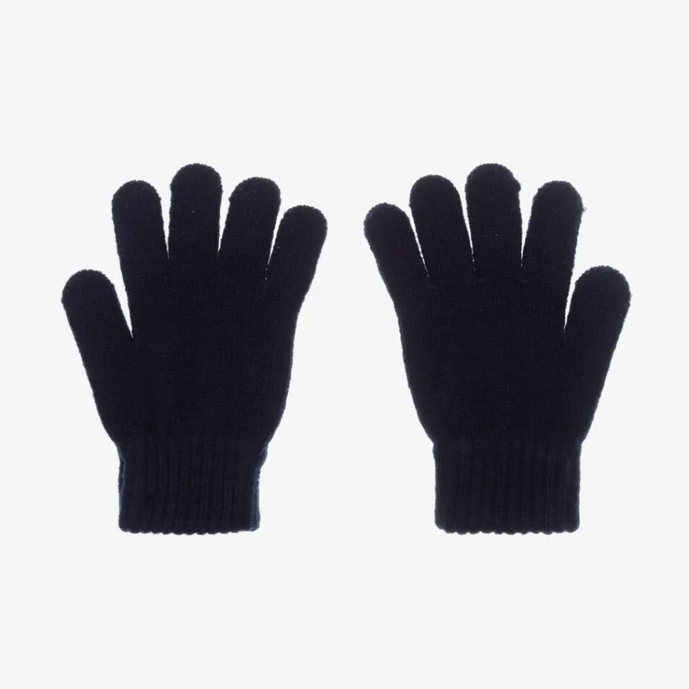 Navy blue gloves for girls by Billieblush, made in a soft knit. These cool gloves have cosy ribbed cuffs and feature a sequin heart appliqué on the back of one hand and a glittery, rubberised logo patch on the other.