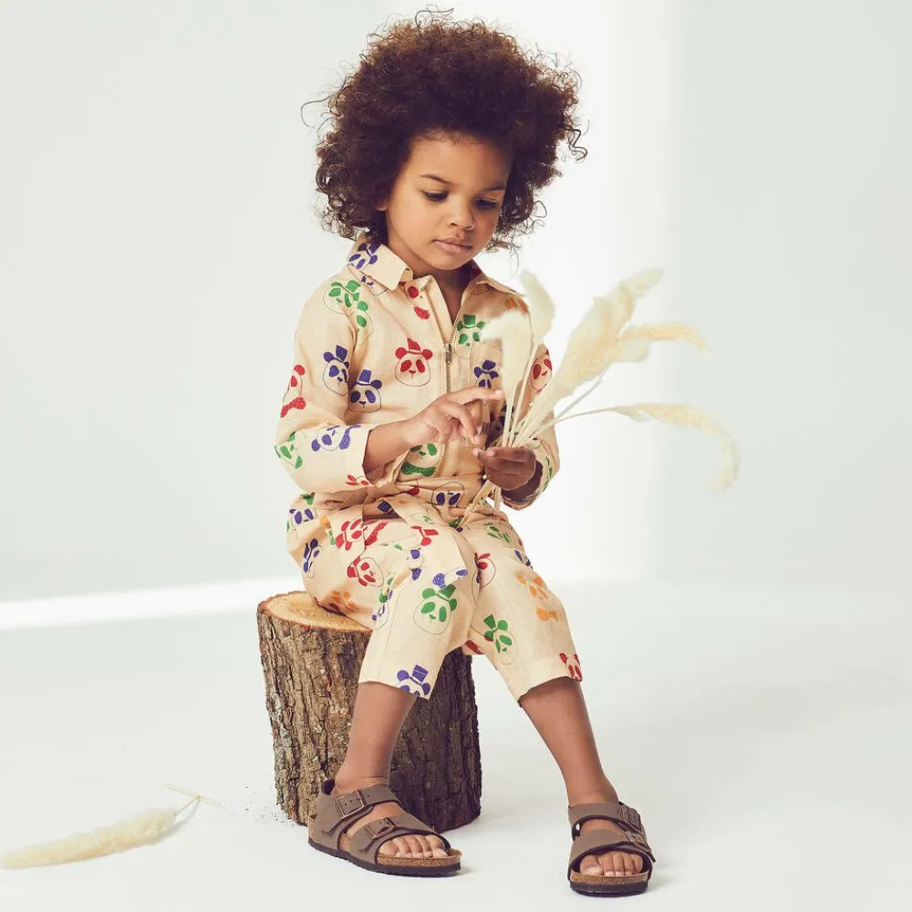 Brown sandals for boys and girls by Birkenstock. The straps are made from Birko-Flor soft faux leather with bronze tone buckle fastenings. The anatomically contoured , suede leather footbed promotes good walking posture, making them a great choice for healthy growth. The ridged, rubber outer sole ensures good grip whilst wearing this neutral style.
