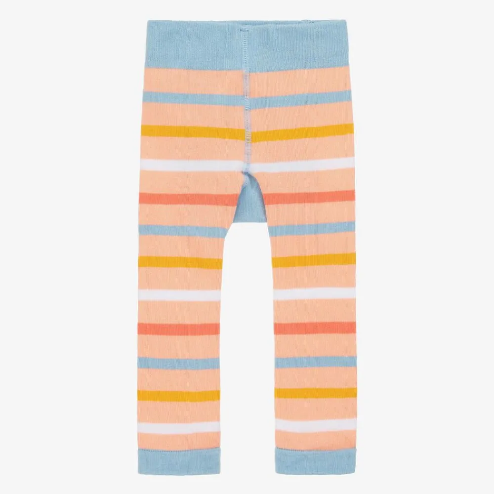 In a lovely shade of pale pink, these full-length leggings for little girls by Blade & Rose are made in a soft and stretchy cotton blend knit. They are patterned with stripes in complementary shades of blue and yellow and have an adorable 'Bella The Horse' motif on the back. The wide elasticated waistband, allows your child to move around and play comfortably.
