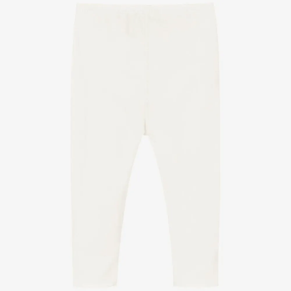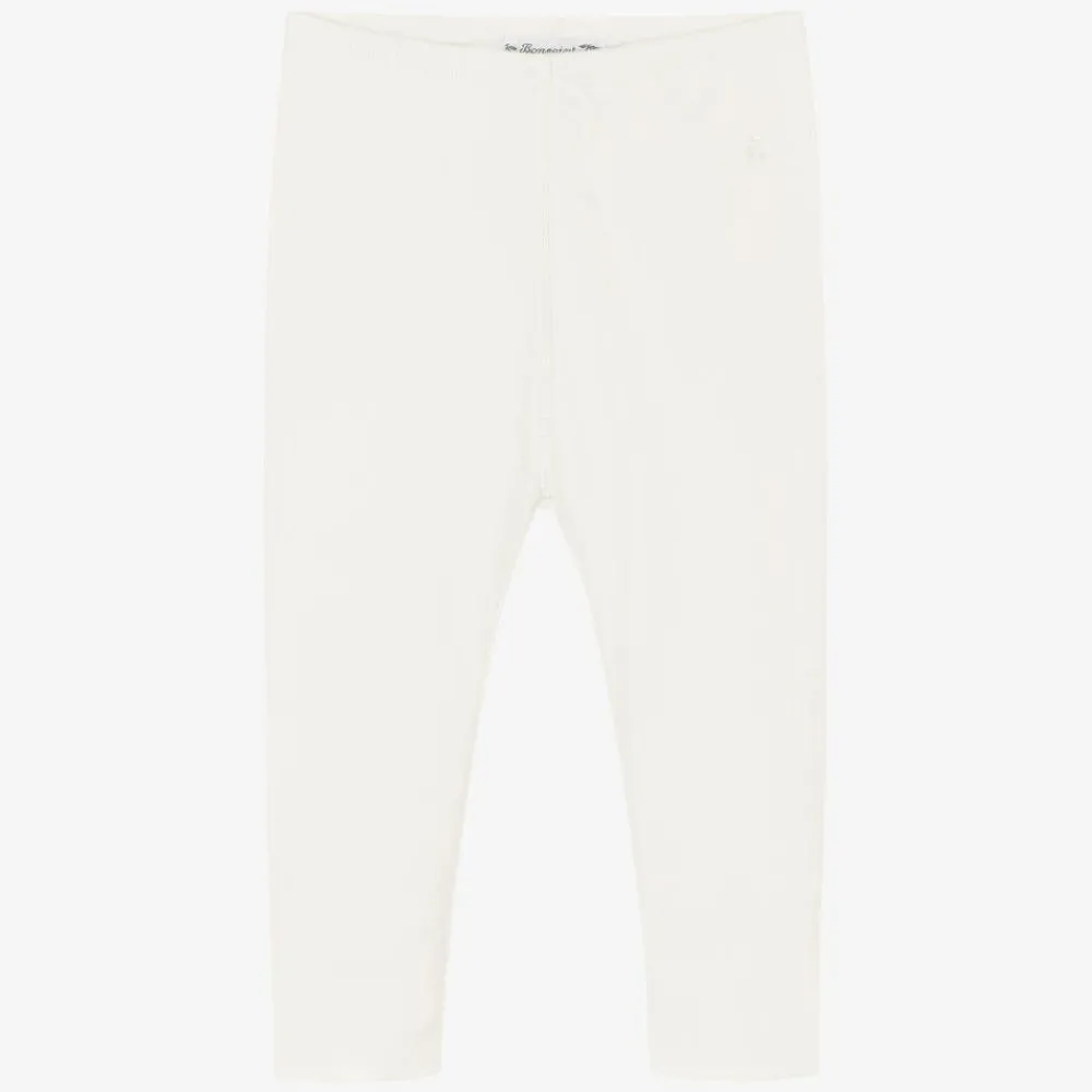 Ivory leggings for little girls by Bonpoint, made in beautifully soft cotton jersey for comfort. Featuring a stretchy waist for a great fit, it has the brand's cherry logo delicately embroidered near the waist.