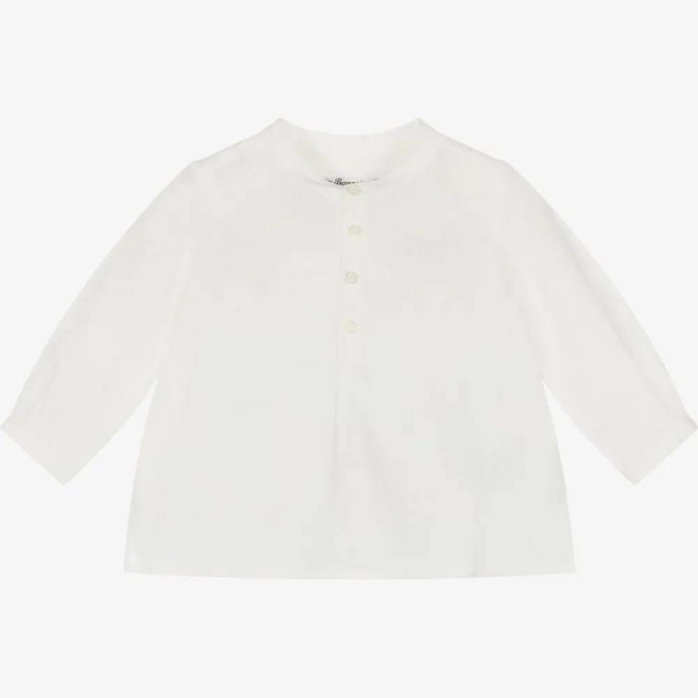 Little boys ivory shirt by luxury French brand, Bonpoint. Softly woven and lightweight, this delicate design has front button fastenings and buttons at the cuffs.