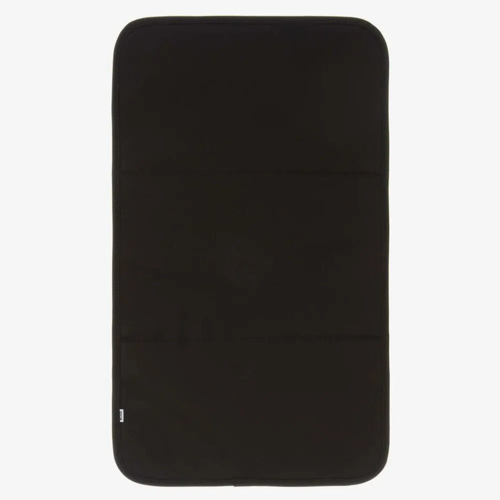 Instantly recognisable, a smart black changing bag by German brand BOSS, with 'The Original Boss 1977' logo badge on the zipped front pocket. Smooth and sleek, the main compartment has five mesh side pockets of varying sizes for neat storage of bottles and other essentials for baby. It fastens with a zip and has fixed, webbed carry handles, with detachable and adjustable shoulder straps and two useful buggy straps. The bag comes with a useful, padded changing mat.