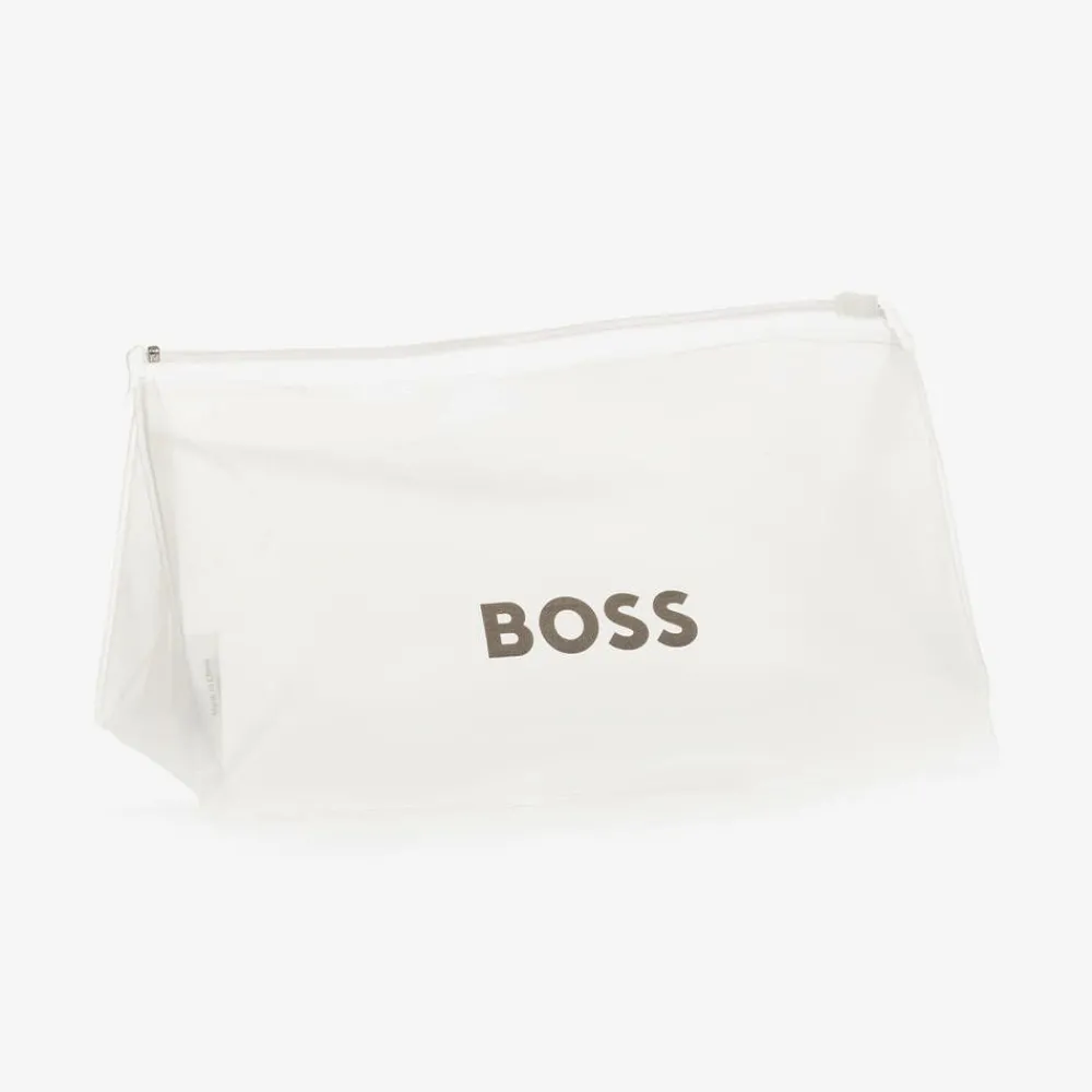 Adorable white and navy blue bunny soft toy for baby boys and girls by BOSS. Super soft and plush, this cuddly little friend has a sweet embroidered face feature and a logo on each foot. Presented in a branded pouch, it makes a lovely gift for little ones as well as a cute decoration for the nursery.