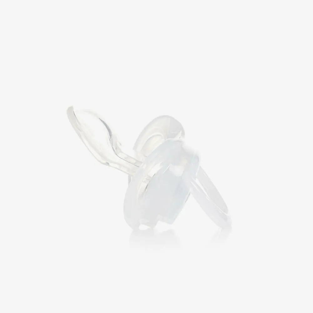 A white BPA-free dummy for baby boys and girls by BOSS, with a distinctive black logo print on the front. This pacifier is made with a silicone teat in a comforting shape and a durable plastic shield. Helping to soothe your little one, the curved top fits easily under the nose and ventilation holes allow air to circulate.