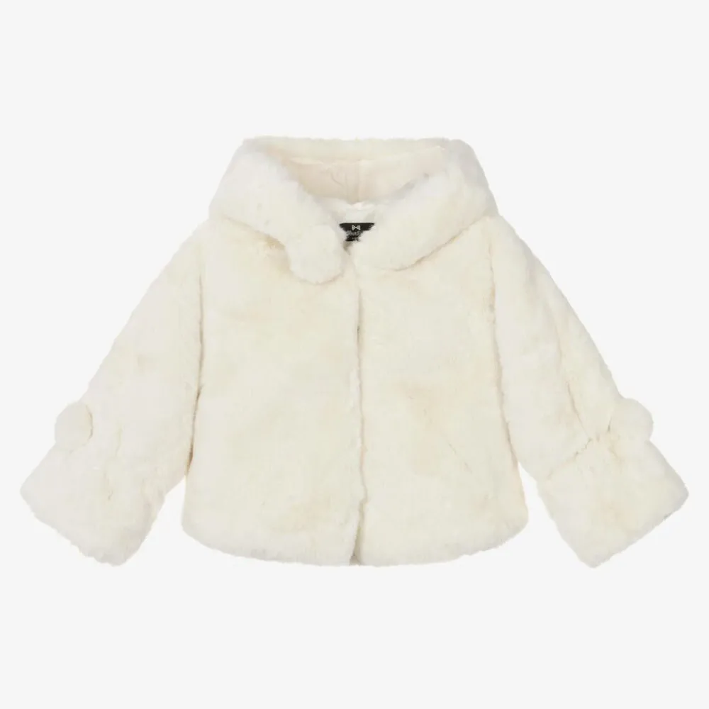 Bowtique London Coats & Jackets*Girls Ivory Faux Fur Hooded Jacket