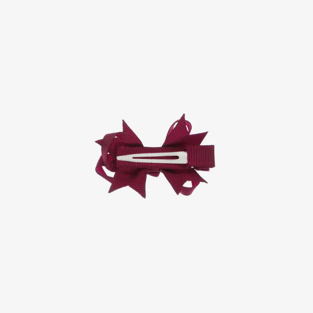 Girls burgundy red bow hair clip by Bowtique London, made in soft grosgrain ribbon. This cute hair accessory easily fastens with a slide-in metal clip and adds a pretty touch to any outfit.