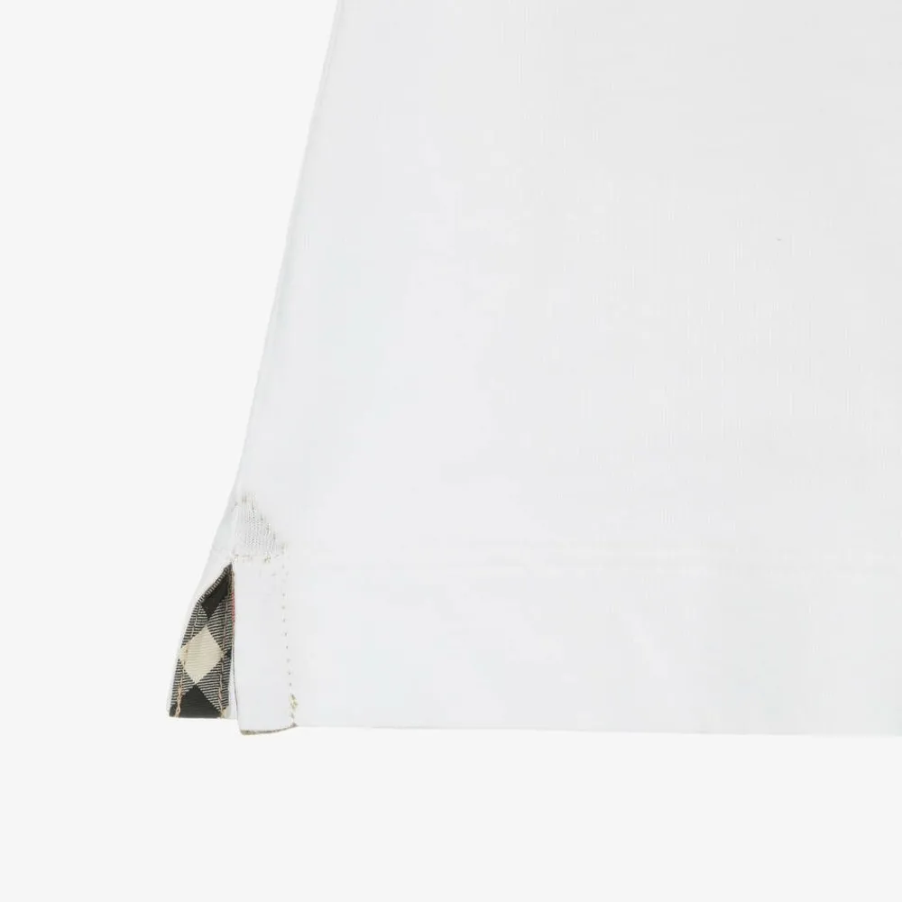 Presented in a lovely gift box, this adorable beige and white trouser set for baby boys is by luxury brand, Burberry. Made from lightweight cotton twill, the hat and trousers are printed with their instantly recognisable Vintage check, for an iconic look. The hat is fully lined, and the trousers have an elasticated waist for a comfortable fit. Simply styled, the short-sleeved shirt is made from soft cotton jersey and has a sweet Peter Pan collar, side vents at the hem, and front button fastenings.