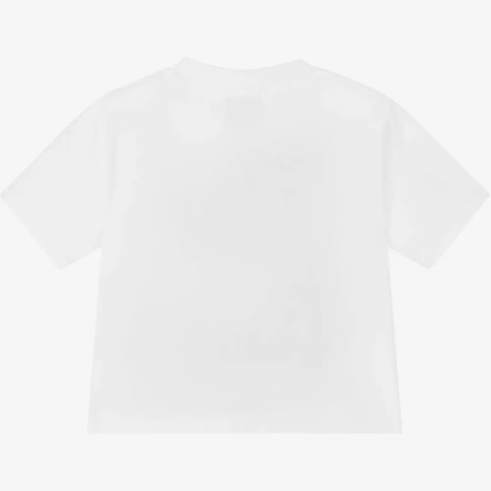 Luxury British brand Burberry brings eye-catching designer style to this classic white T-shirt for baby boys and girls. It features a montage of the house codes in rubberised black, including coordinates and Thomas Bear redesigned with a star. Made in beautifully soft organic cotton jersey, this comfortable T-shirt has button fastenings on one shoulder to make dressing a little easier.