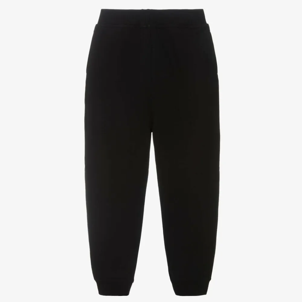 Comfortable and stylish for boys and girls, these black joggers from luxury British brand Burberry are made in soft, mid-weight cotton jersey. They have a stretchy ribbed waistband, convenient side seam pockets and a silky, Equestrian Knight Design label for instant designer appeal.