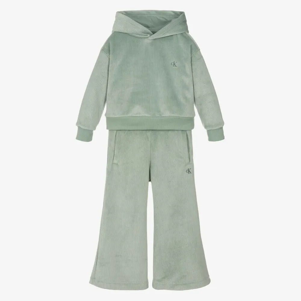 Calvin Klein Outfit Sets*Girls Green Velour Trouser Set