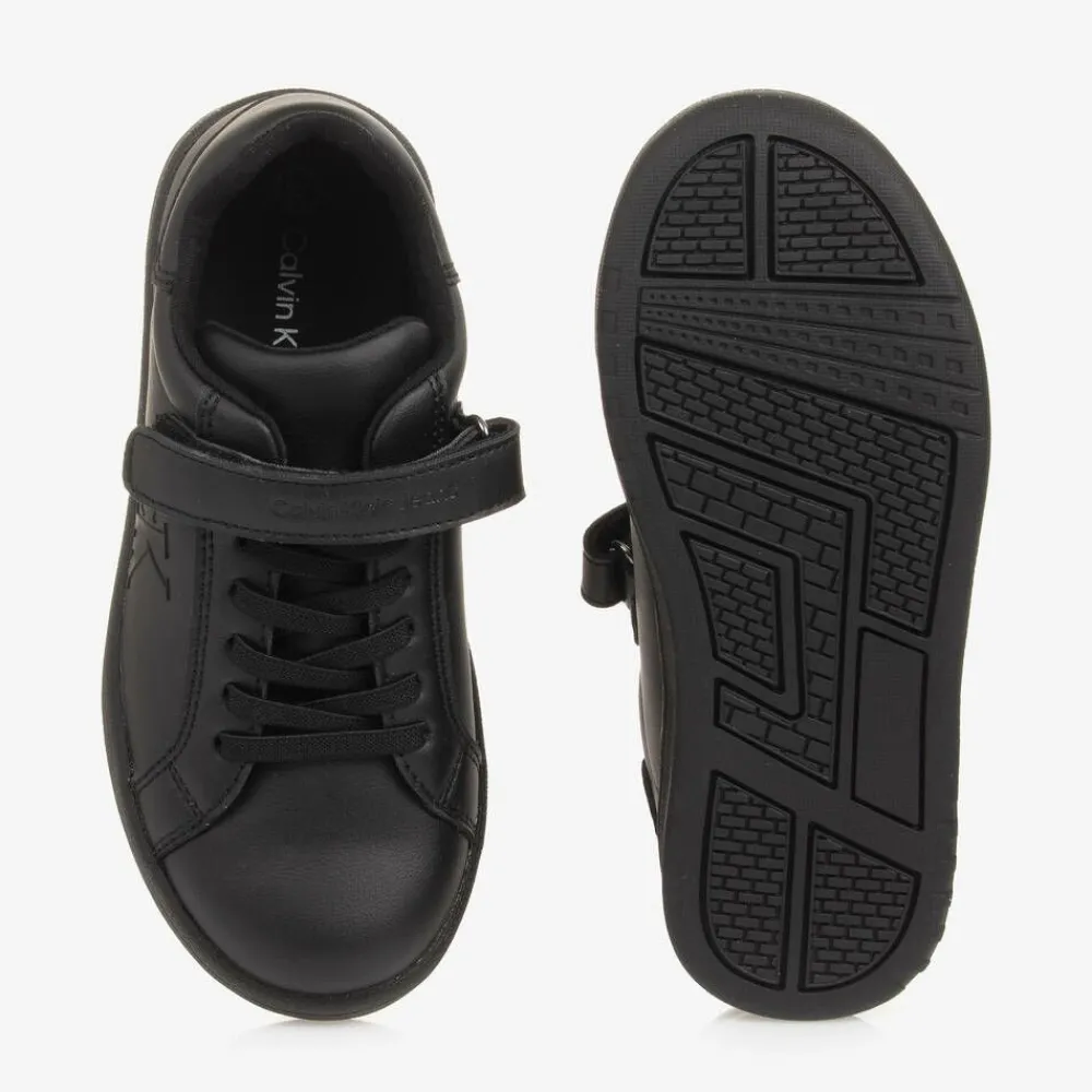 Calvin Klein School Shoes*Black Faux Leather Trainers