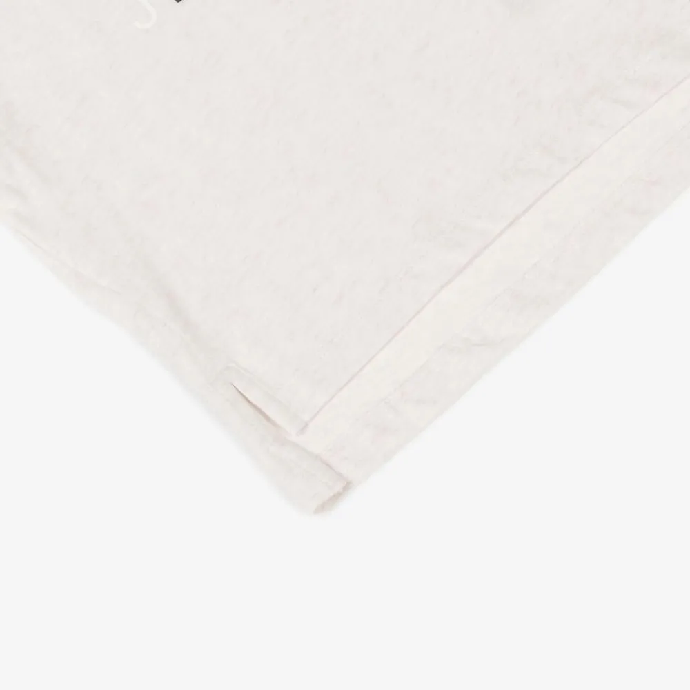 Beige marl cotton T-shirt for girls by Calvin Klein, with a colourful logo print on the chest. Made in soft and stretchy jersey this short-sleeved top has a relaxed fit and a stepped hem.