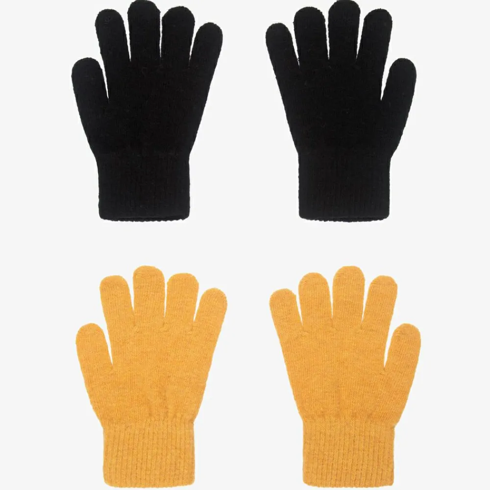 Pack of two, mustard yellow and black gloves for boys and girls by Danish brand CeLaVi. Knitted in a super soft wool blend, they will keep little hands warm and cosy.
