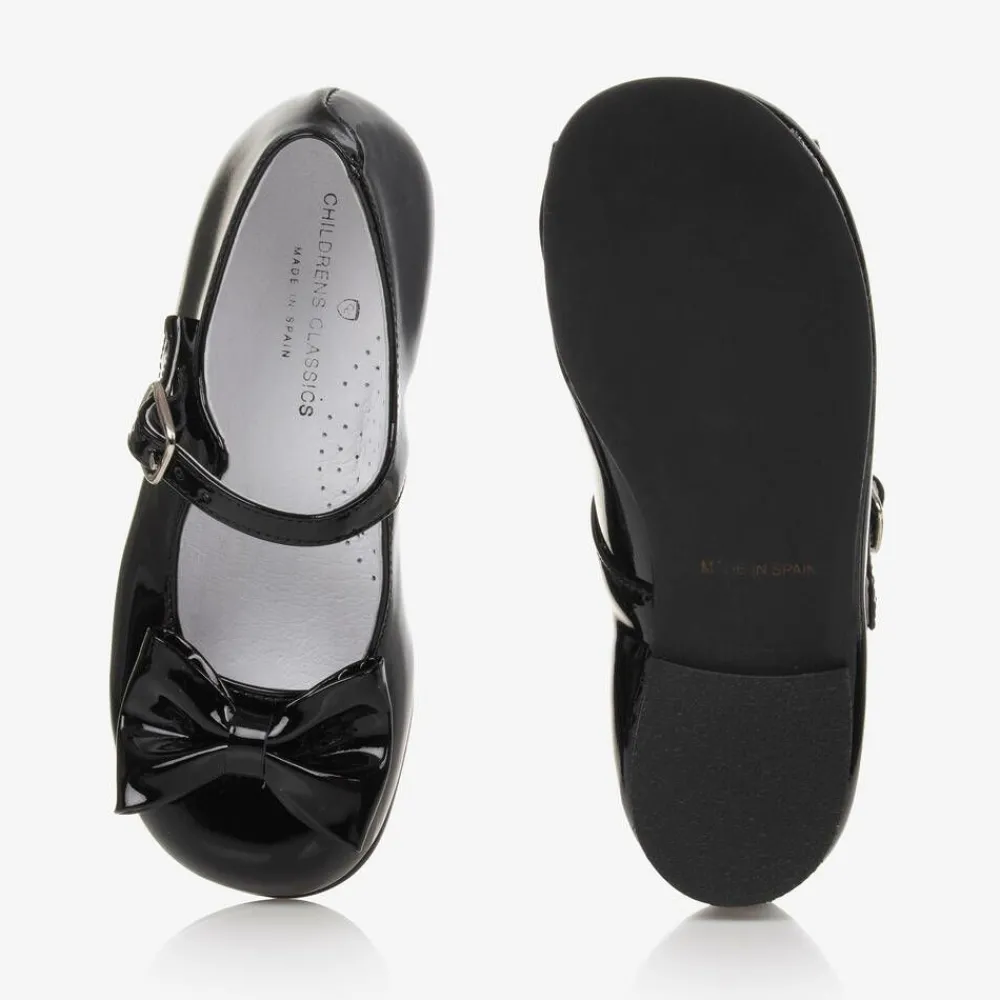 Childrens Classics Bar Shoes|Bar Shoes*Black Patent Leather Bow Shoes