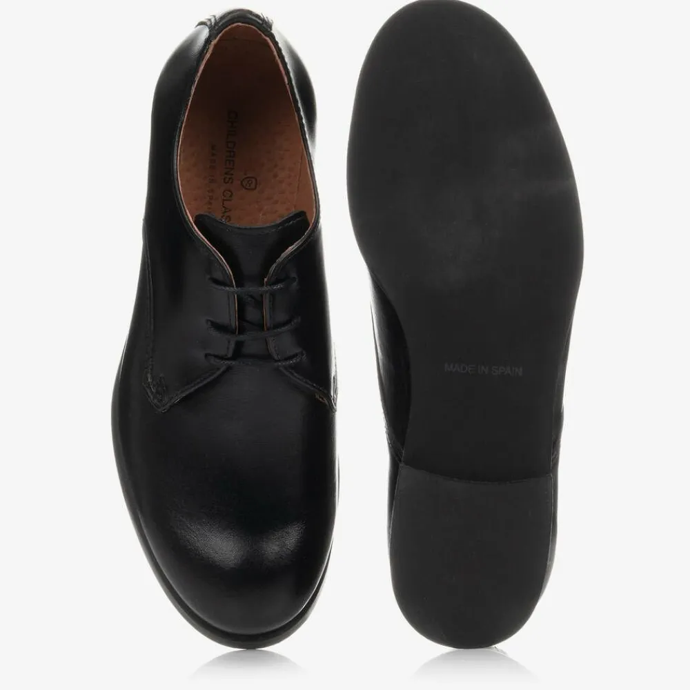 Exclusive to Childrensalon, a pair of black leather Oxford shoes for boys from Children's Classics. These smart lace-up shoes are lined in soft leather with a smooth rubber outsole.