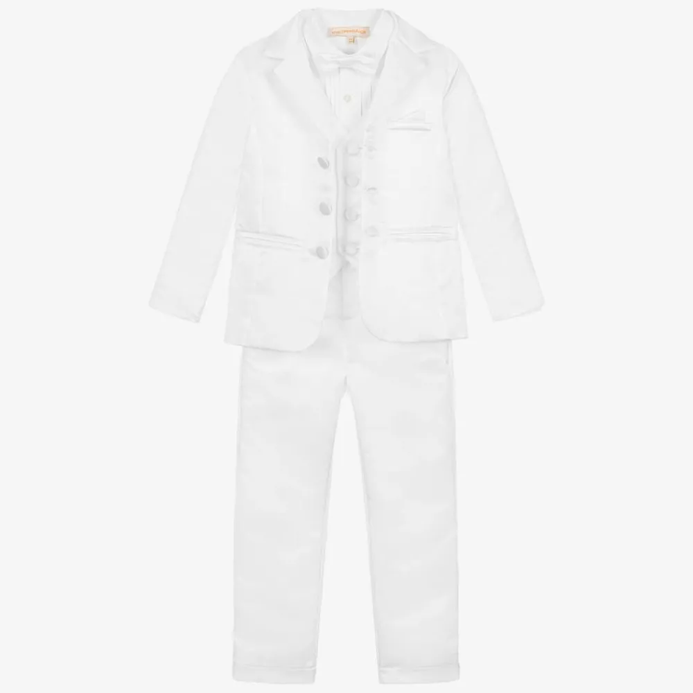 Childrensalon Occasions Suits*Boys White Satin 5-Piece Suit