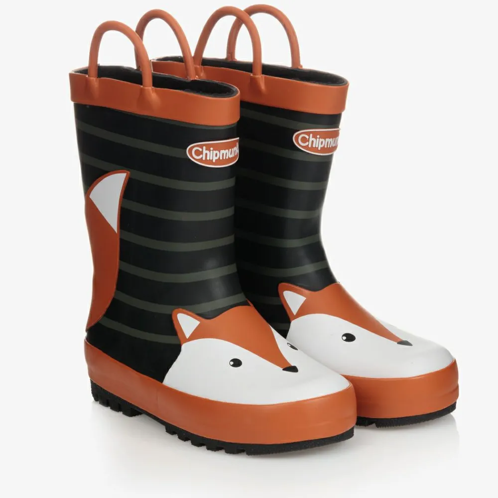 Chipmunks Rain Boots|Rain Boots*Black & Orange Fox Rain Boots