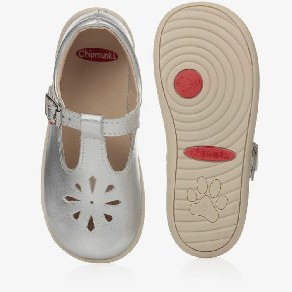 Chipmunks Traditional Shoes*Girls Silver Leather T-Bar Shoes