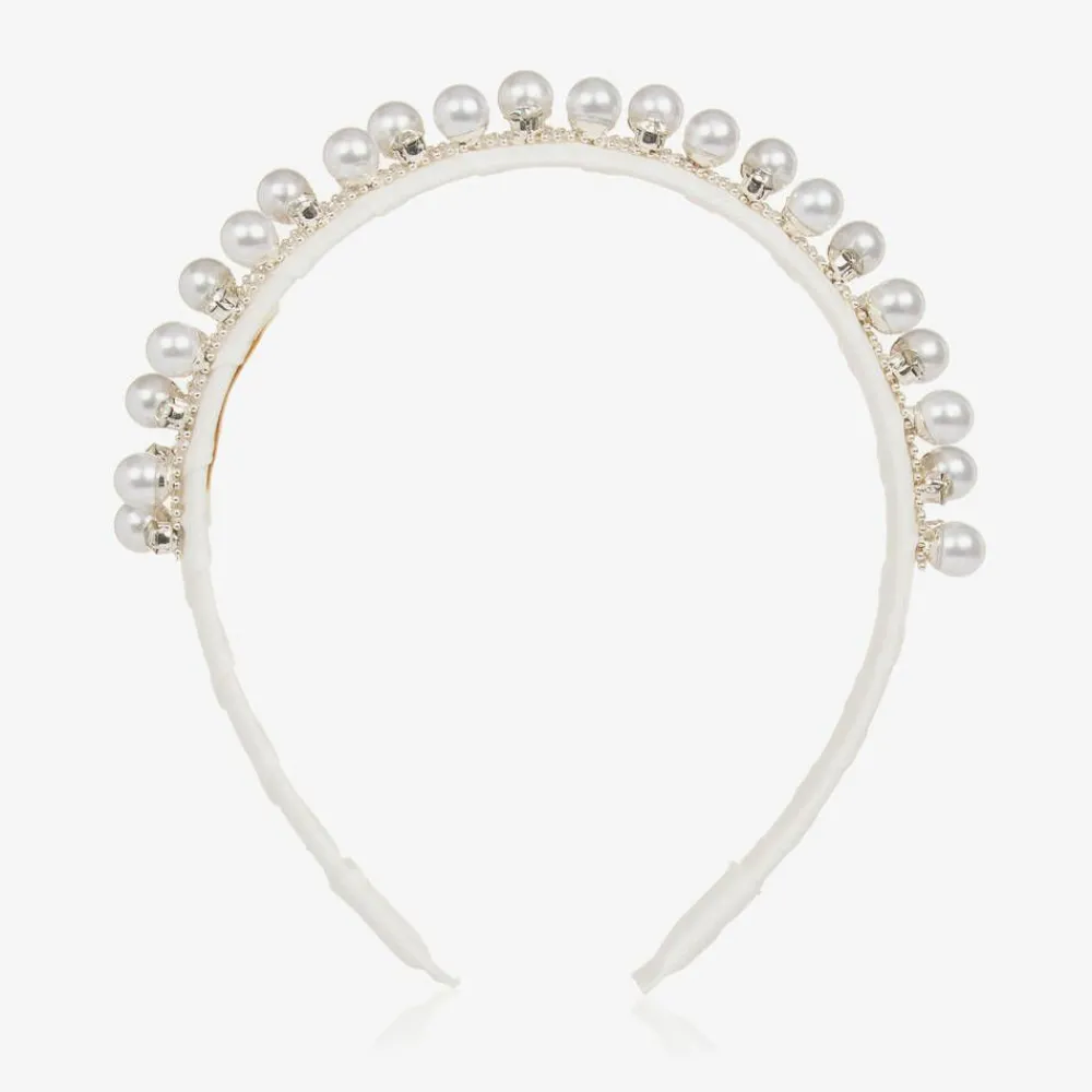 David Charles Hair Accessories*Girls Diamanté & Pearl Ivory Hairband
