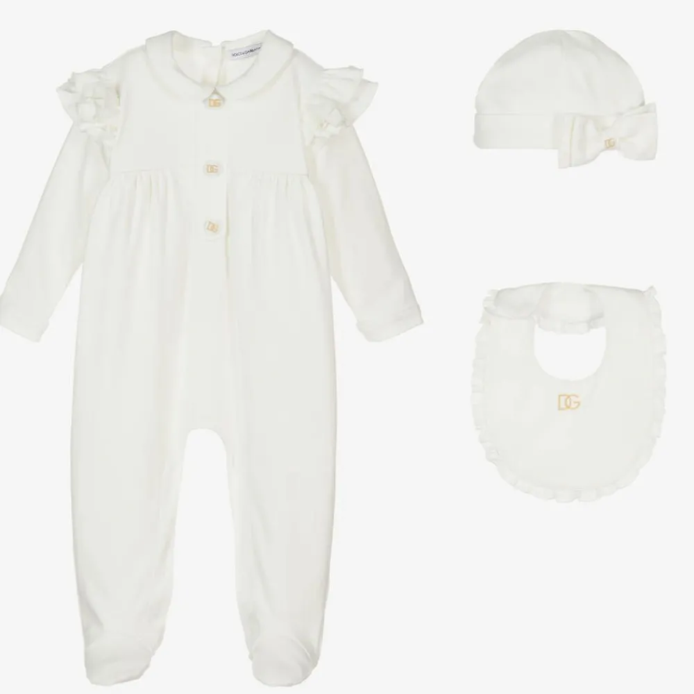 Dolce amp; Gabbana Gifts|Babysuits*Girls White & Gold Cotton Babygrow Gift Set