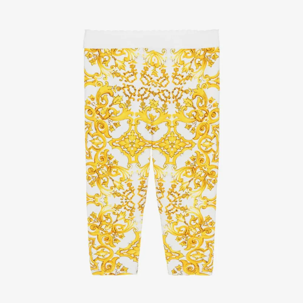 Dolce amp; Gabbana Leggings*Baby Girls Yellow Majolica Print Cotton Leggings