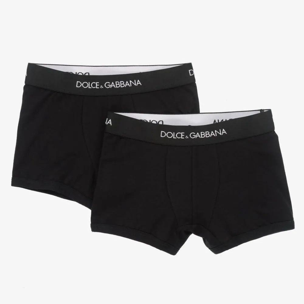 Dolce amp; Gabbana Underwear*Boys Black Cotton Boxers (2 Pack)