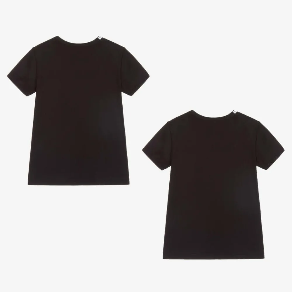 Pack of two black Mini-me T-shirts for boys and girls, by luxury brand Dolce & Gabbana. Made from cotton jersey in a regular fit, they are lightweight and comfortable with logo branding on the ribbed neck.
