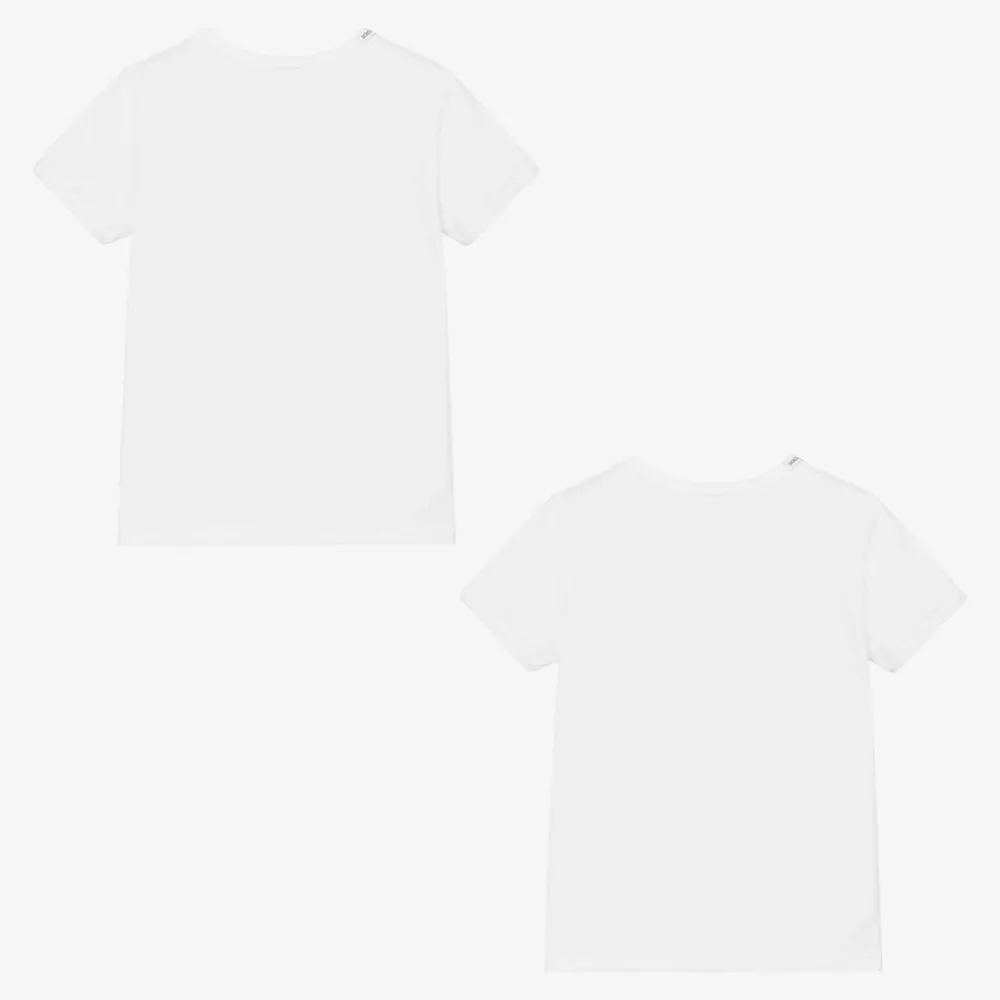 Pack of two white Mini-me T-shirts for boys and girls, by luxury brand Dolce & Gabbana. Made from cotton jersey in a regular fit, they are lightweight and comfortable with logo branding on the ribbed neck.