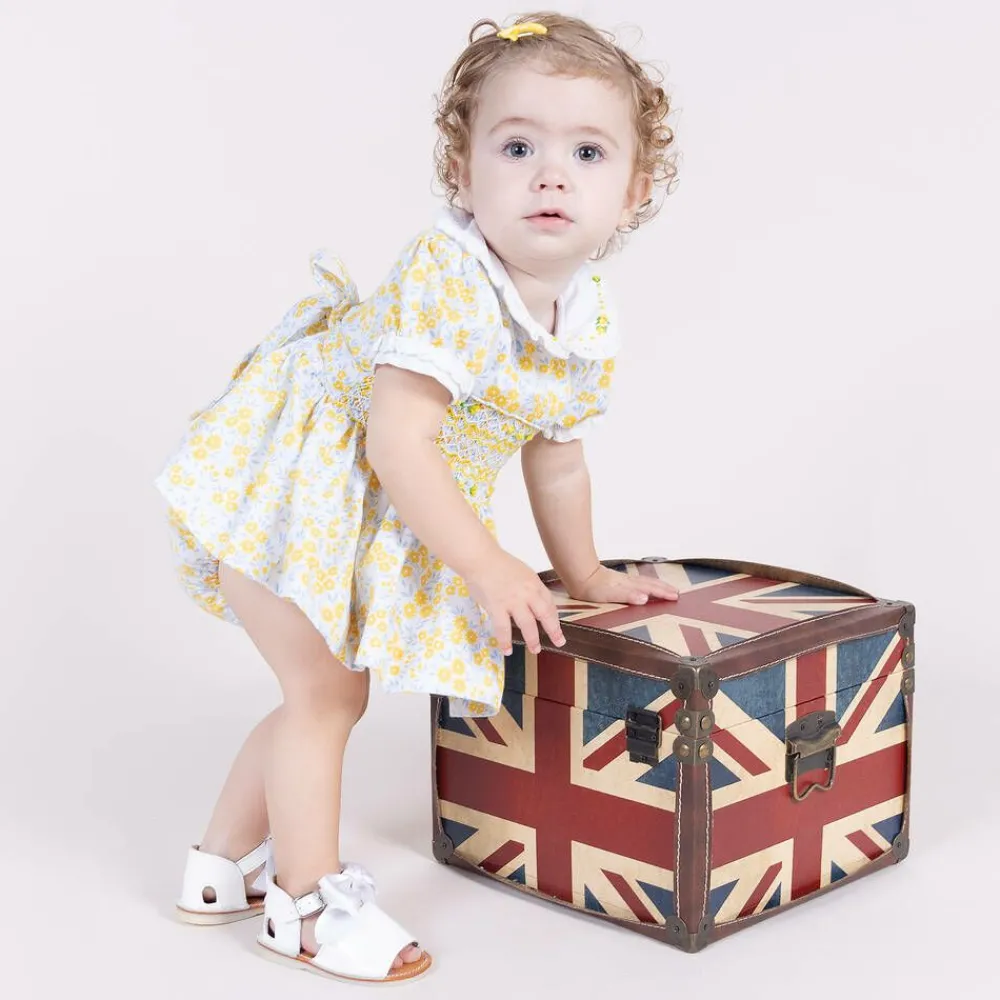 Little girls gorgeous white Early Days sandals made from patent leather. They have a soft leather inner sole, a non-slip rubber sole and fasten with an adjustable buckle. The pretty satin bows can be removed for a more casual look.