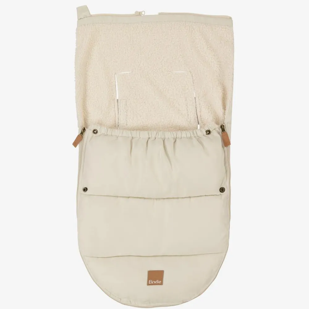 A dark ivory padded nest for baby boys and girls by Swedish brand Elodie. Super soft and comfortable, it has a zip fastening that opens at both ends to make it easy to get little ones in and out. Water repellent and lined in cosy bouclé fleece, the front flap can be folded down with popper fastenings or removed in warmer temperatures. Designed with a large fold-away hood, there are pre-cut holes at the back with velcro fastenings for attaching to a car seat.