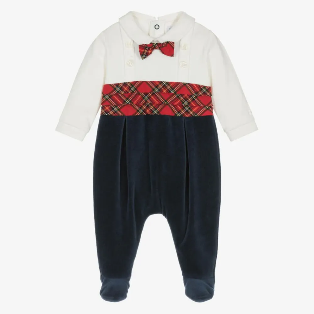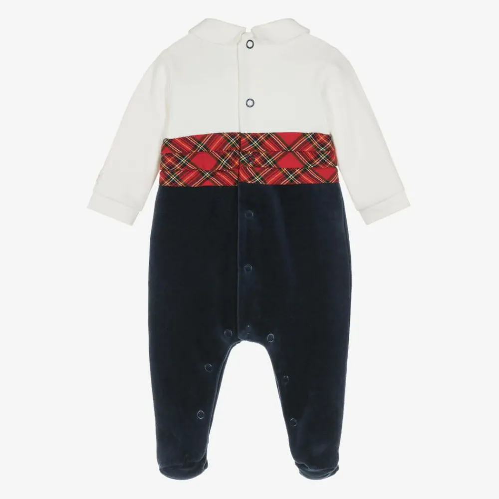 Emile et Rose Babysuits*Boys Navy Blue Velour Tartan Babygrow