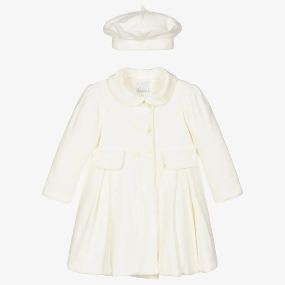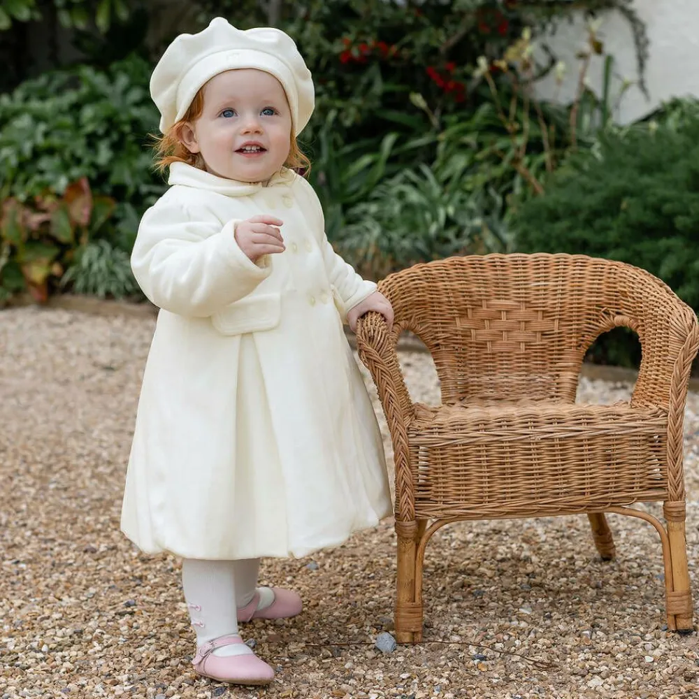 Emile et Rose Coats & Jackets*Baby Girls Ivory Velour Coat & Hat Set