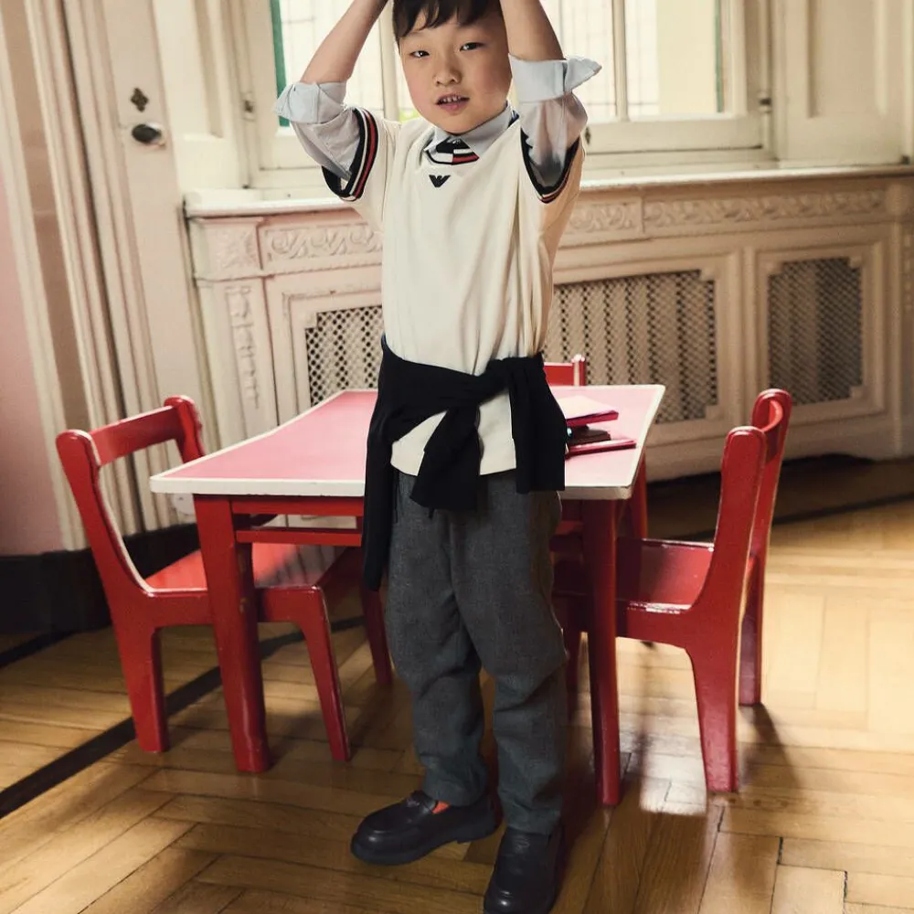 From the celebrated Italian designer Emporio Armani, smart and stylish black leather loafers for girls. The smooth leather upper is durable, whilst the lining and insoles offer comfort. The signature Eagle logo is on the top of the shoe for a subtle branded finish.