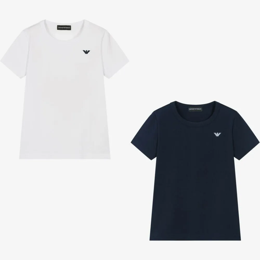 Emporio Armani Underwear*Boys White & Blue Cotton T-Shirts (2 Pack)